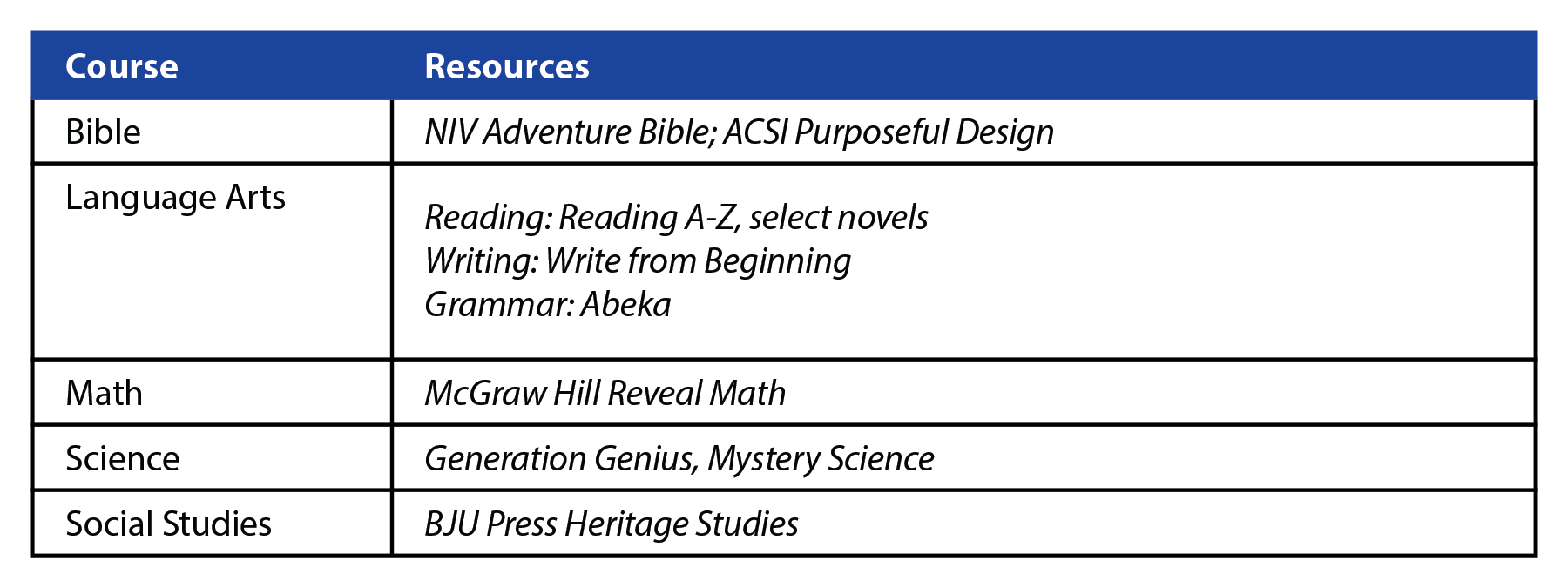 Most importantly, our curriculum is all Bible-centered and students are educated in the light of God’s word. Students will learn to view reality and make sense of life and the world from a biblical framework as a developing student. Our elementary students are provided a place where they can feel valued and safe.